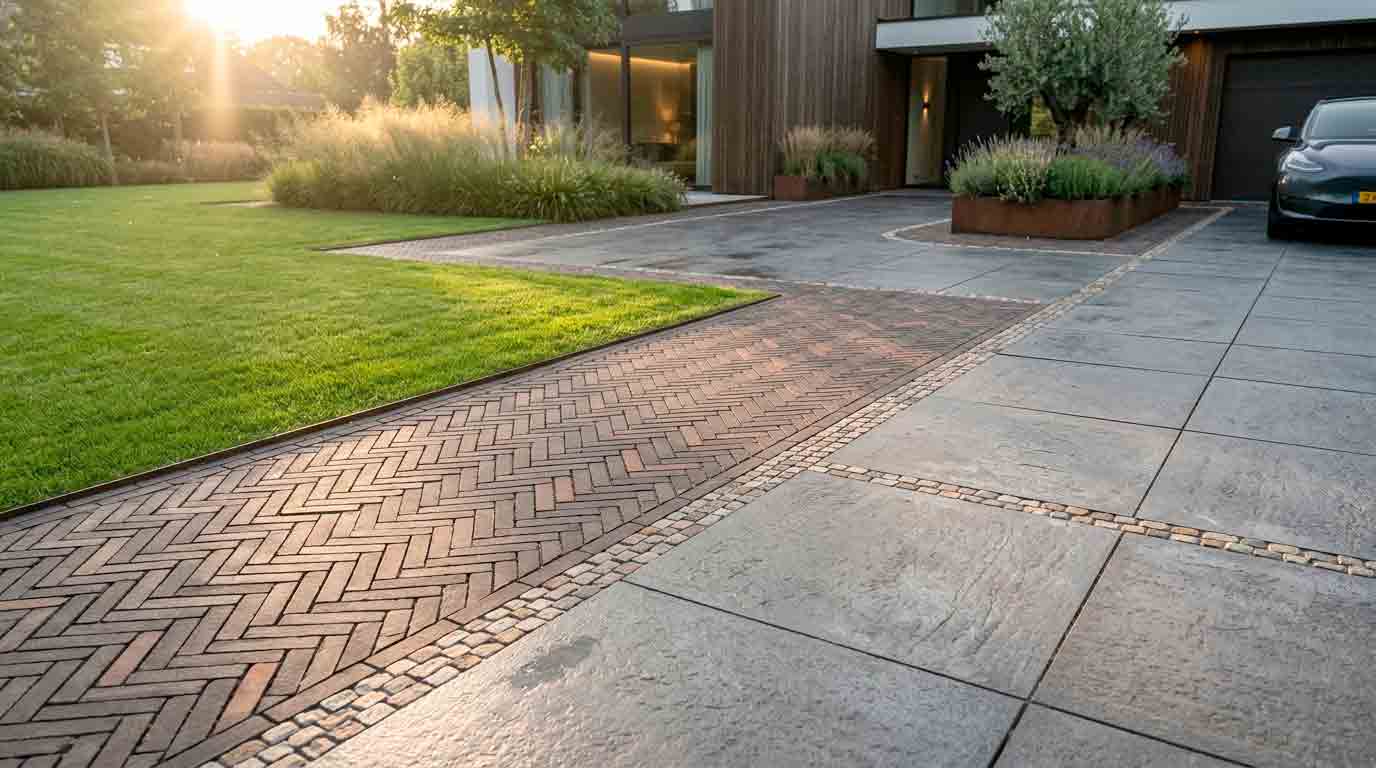 Viena iš naujų krypčių yra didelio formato plokščių naudojimas automobilių įvažiavimuose. Dar neseniai vyravo nuomonė, kad didelės plokštės neatlaiko svorio, tačiau naudojant modernią armavimo technologiją ir itin storą (100–120 mm) betoną, sukuriamas vientisumo pojūtis, būdingas moderniai minimalistinei architektūrai. Tokios dangos derinamos su smulkiomis akmens mozaikomis kraštuose, sukuriant prabangų ir išbaigtą vaizdą.