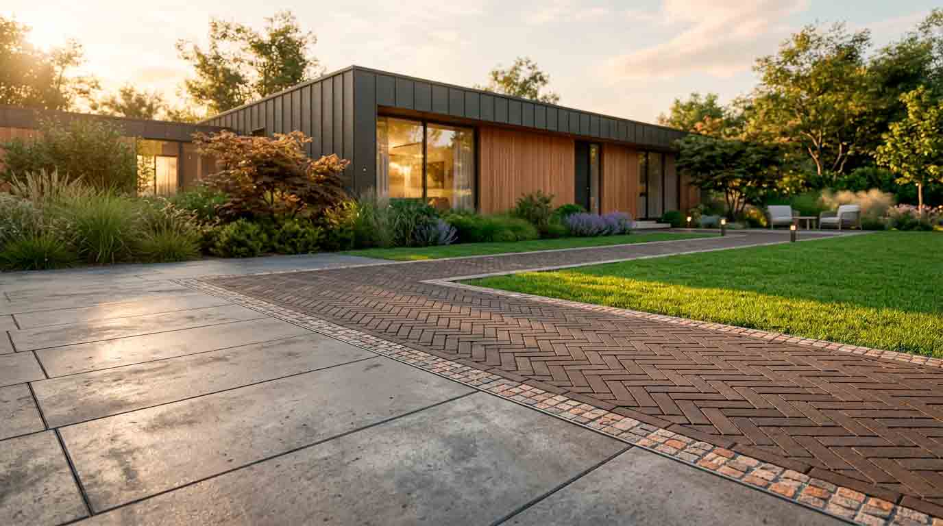 2026 m. eksterjero dizaino mados diktuoja grįžimą prie natūralumo, derinamo su drąsiais technologiniais akcentais. Ugnies Arklio metų energija atsispindi spalvų paletėje, kurioje šalia tradicinių pilkų atspalvių atsiranda sodrios rudos (espresso), antracito ir net gilios raudonos (terakotos) spalvų deriniai. Populiarėja „eglutės” raštas, kuris ne tik vizualiai prailgina erdvę, bet ir inžineriniu požiūriu geriausiai paskirsto stabdymo jėgas tarp trinkelių.